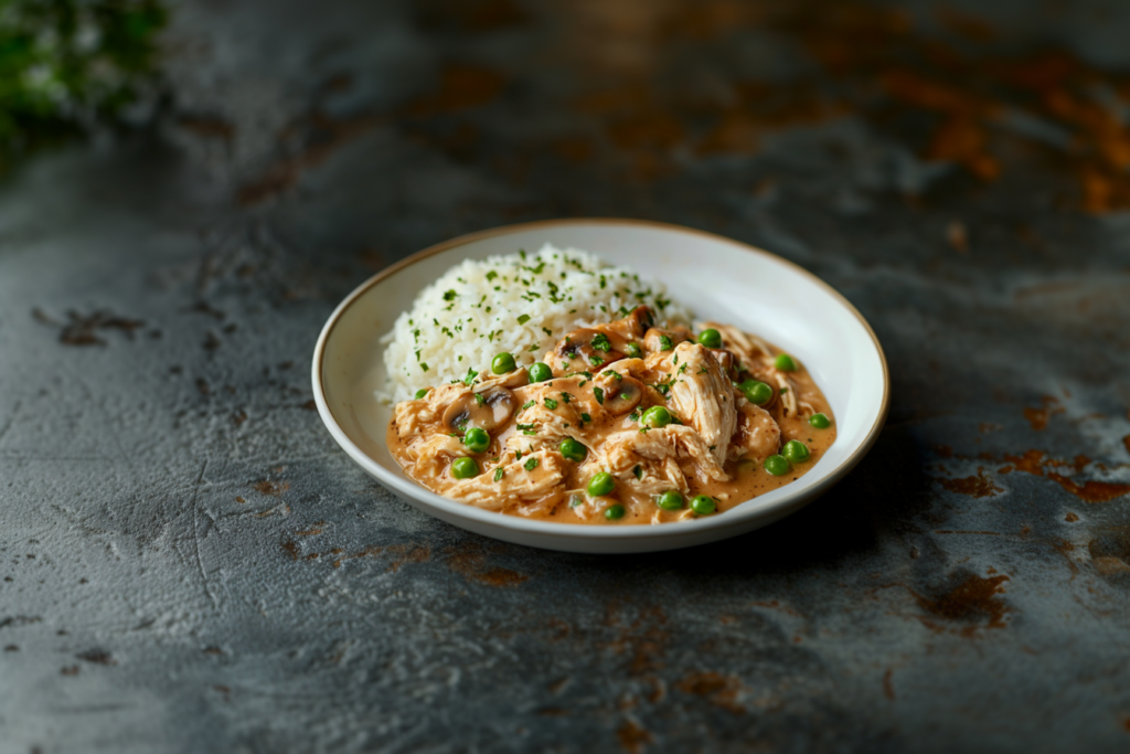 ist ein echter Klassiker der deutschen Küche – besonders in der kälteren Jahreszeit. Dieses Rezept, zubereitet mit einem ganzen Suppenhuhn, bringt den vollen Geschmack einer selbstgemachten Brühe und kombiniert zartes, gezupftes Hühnerfleisch mit einer cremigen Sauce, Erbsen und Champignons. Das Gericht ist leicht, comforting und wird perfekt von fluffigem Reis begleitet.